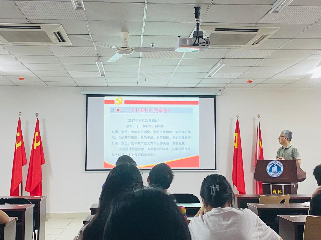 学院分党校紧紧围绕主要学习任务,进行了线下四场专题课程。一是《党员发展的基本程序与要求》专题党课,使学员们了解《中国共产党发展党员工作细则》,了解党员发展的各个阶段与步骤,规范自身入党程序,不辜负党组织的教育与培养。二是习近平总书记在建团100周年大会上的重要讲话精神专题学习。通过学习,使学员们坚定信念,明确身上的责任与担当,自觉把个人的理想追求融入国家和民族的事业中。三是海南省第八次党代会精神专题学习。通过学习,使学员了解世情国情省情,进一步了解海南自由贸易港建设“一本三基四梁八柱”战略框架,把总书记对海南的要求和期望转化为推动海南发展的强大动力。四是《学好党章,牢记宗旨,做信仰坚定的大学生党员》专题。通过原原本本读党章、学党章,加深了大家对党的性质、理想目标、指导思想、基本要求、党员义务权利的认识,引导学员们尊崇党章、遵守党规,坚定理想信念,率先垂范做榜样。