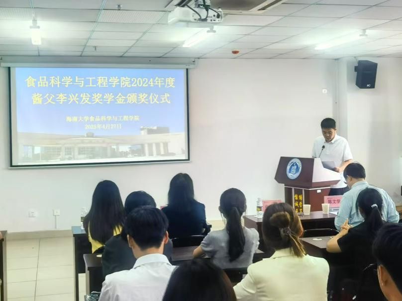 2025年4月27日下午,在线买世界杯平台在研发楼610举行2024年度酱父李兴发奖学金颁奖仪式。学院党委书记邢红斌、院长张家超等党政领导班子成员,贵州李明英酒业有限公司董事长李明英女士、师生代表及企业嘉宾共同出席活动。颁奖仪式由李从发教授主持。