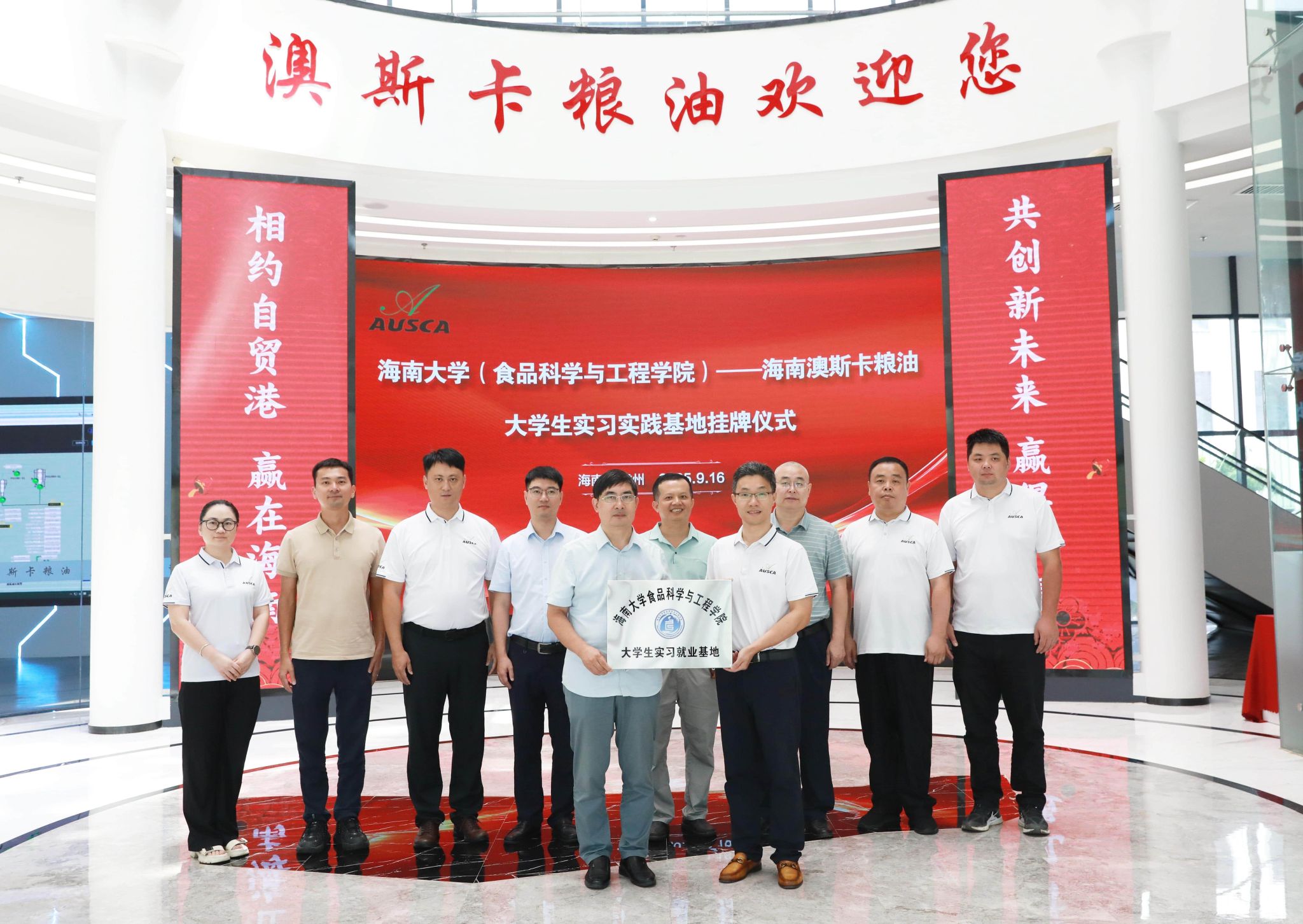 与海南澳斯卡国际粮油有限公司进行世界杯大学生实习基地授牌