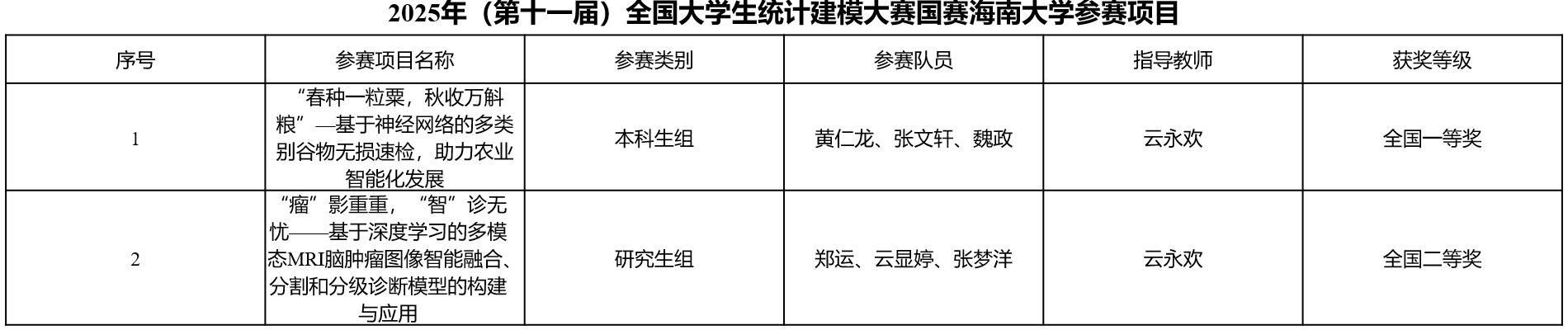 10月25日至26日,由我院云永欢老师带队参加的第十一届全国大学生统计建模大赛中取得历史性突破。本科生团队获得全国一等奖(获奖率0.29%),研究生团队获得全国二等奖(获奖率0.57%)。