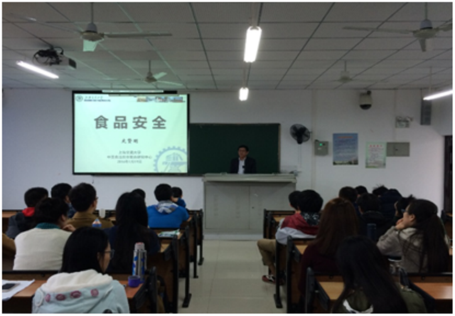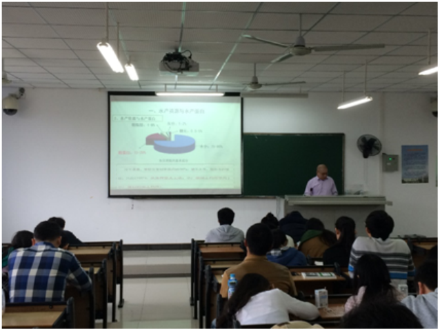 2016年1月15日-1月19日,上海交通大学食品科学与工程系史贤明教授、广东海洋大学章超桦教授、中国水产科学研究院南海水产研究所李来好研究员应邀来世界杯为世界杯学生讲授《食品安全学》课程,该课程与食品质量与安全专业相关课程紧密相关。授课开始,5教203教室座无虚席,学生与老师互动积极,课堂氛围活跃。