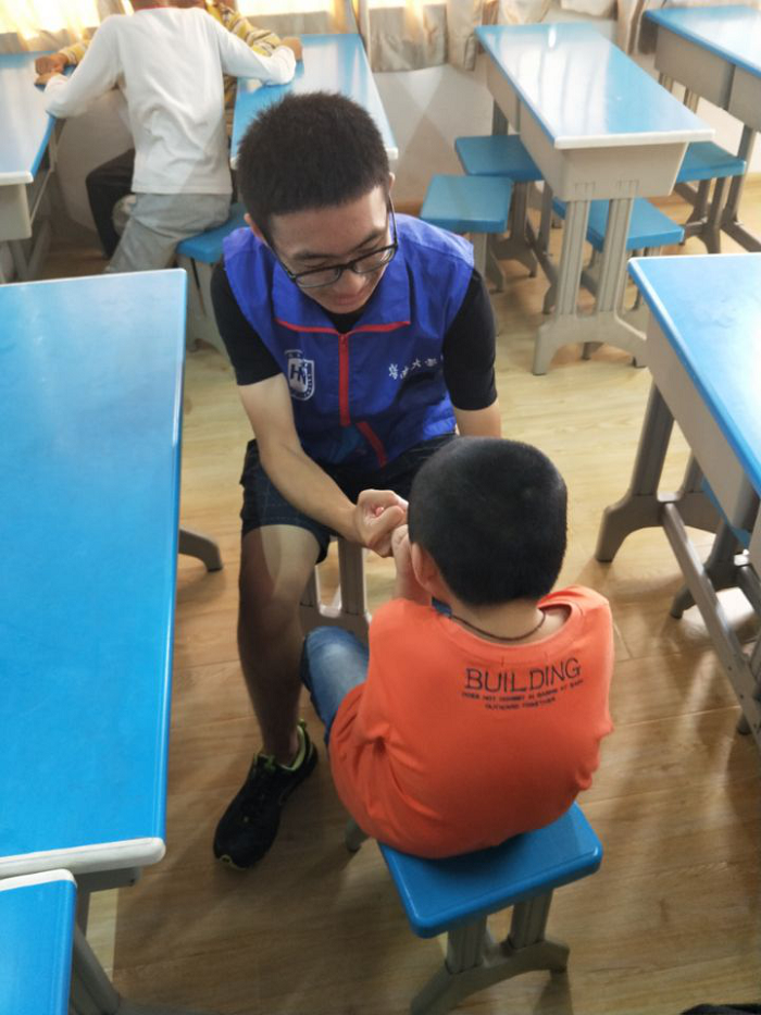 2018年4月24日下午,在线买世界杯平台食品学院青年志愿者协会如常前往天翼特教中心,在课堂上协助老师们管理课堂纪律,下课时间与自闭症和智力障碍的儿童一起做游戏。支教的历程中,当遇到其他组织的青年志愿者开展支教活动,双方又会团结协作,一起帮助机构的老师完成教学任务。虽然每次的活动内容基本一致,但是志愿者们面对的孩子却是不一样的,所以志愿者们都会以一个严肃认真的态度去面对每一位自闭症和智力障碍儿童,为他们带去真心实意的关怀。