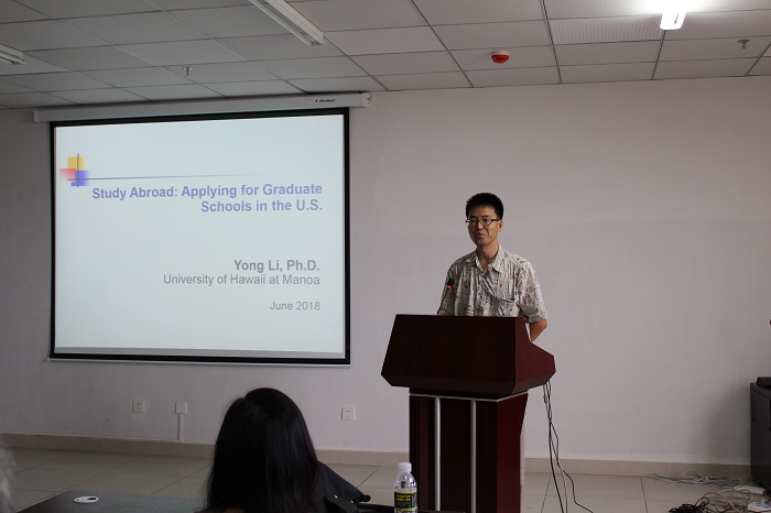 2018年6月8日上午八点,在线买世界杯平台食品学院在研发楼610教室学院举办美国夏威夷大学招生介绍会,食品学院党委书记邓秀成、副院长史学群、申铉日和党委副书记王红英出席本次介绍会。招生介绍会荣幸邀请到美国夏威夷大学马诺阿分校热带农业与人力资源学院人体营养、食品与动物科学系备李勇教授、美国夏威夷大学马诺阿分校热带农业与人力资源学院食品与动物科学系代理系主任郡素君教授和北卡罗来纳州立大学人类健康研究所博士后何凯希教授来院为学院学生做专业介绍。