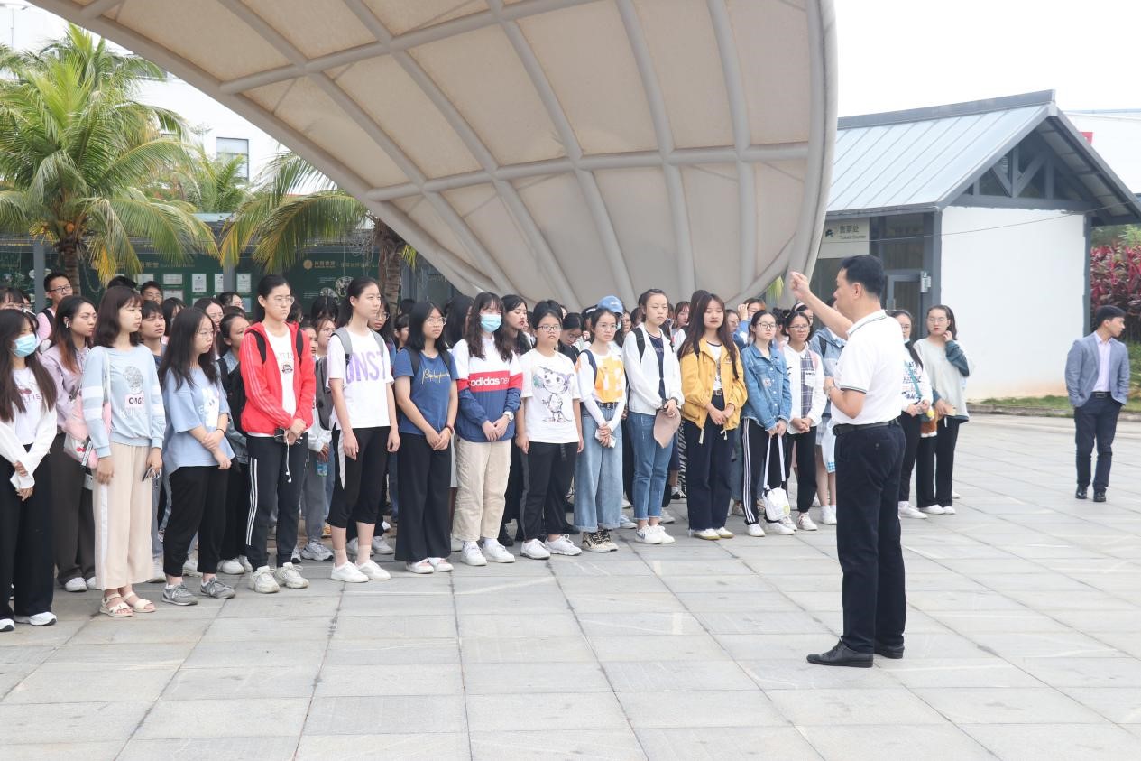2020年11月20日上午,在线买世界杯平台2020级新生开展走进南国健康产业园实践教育活动。参加此次活动的有在线买世界杯平台副院长陈文学、辅导员杨玉珅、2020级班主任陈健、刘中原、姜珂、曹宏梅、2020级班助、全体2020级新生以及学院创新创业团队学生代表。