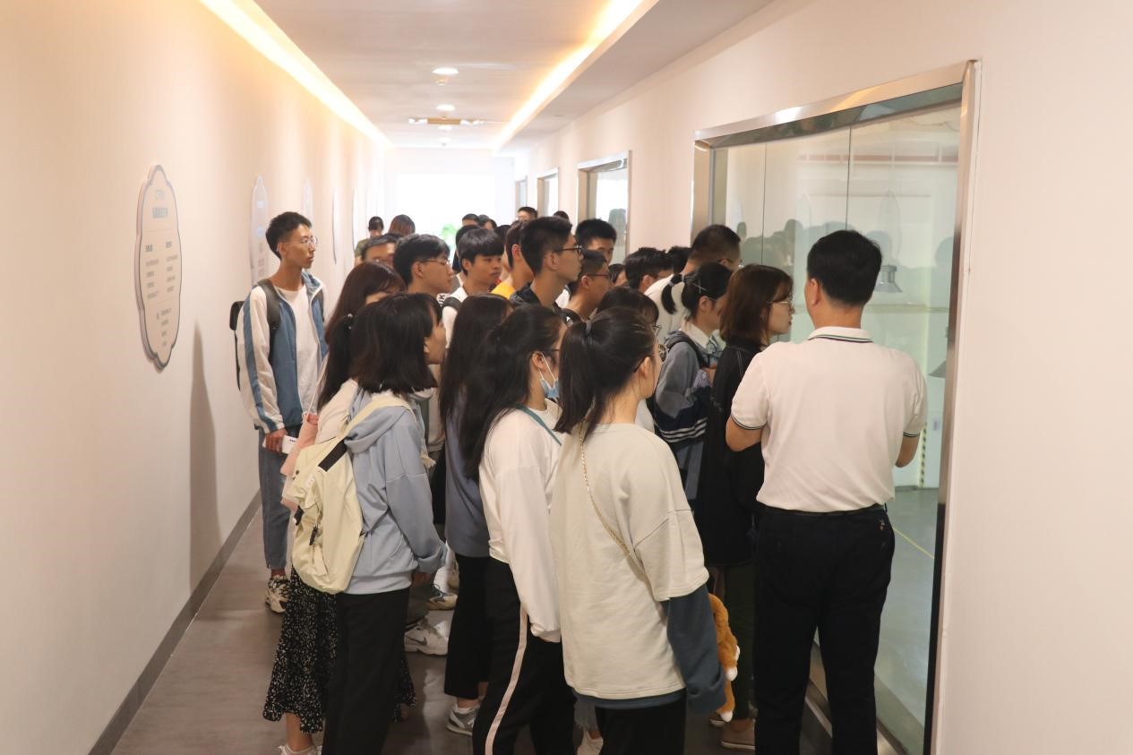 同学们在南国健康产业园陈伟斌副总经理和讲解员的带领下参观了企业园林、南国健康馆及生产车间,了解食品生产工艺流程。