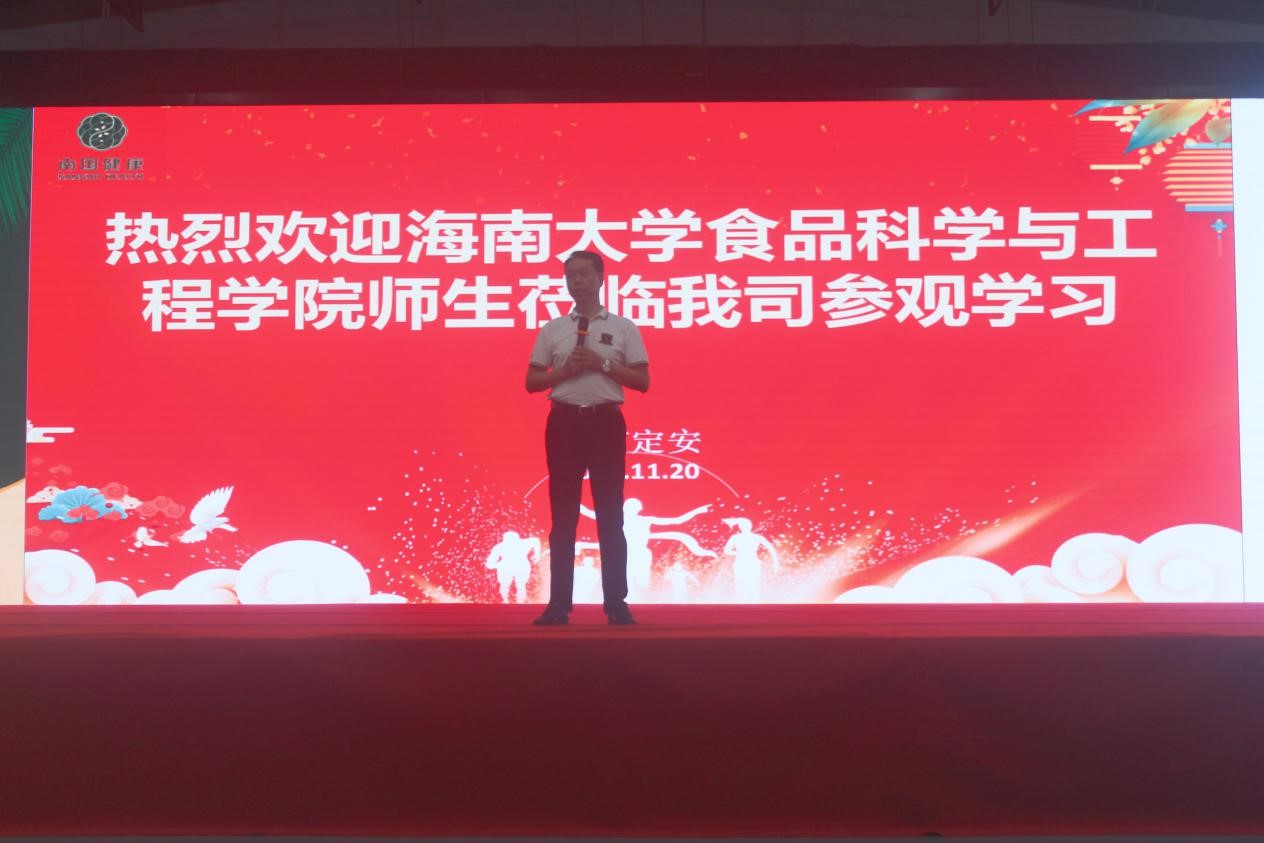 首先南国健康产业园副总经理陈伟斌及南国健康产业公司工作人员对在线买世界杯平台全体师生的到访表示热烈欢迎。陈伟斌副总经理向同学们介绍了南国企业的文化、品牌发展和产品种类,让同学们对南国食品有了初步的认识。