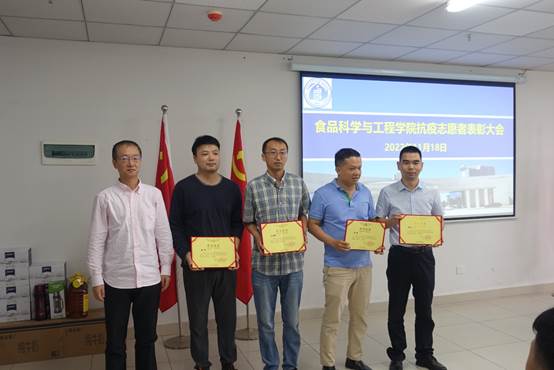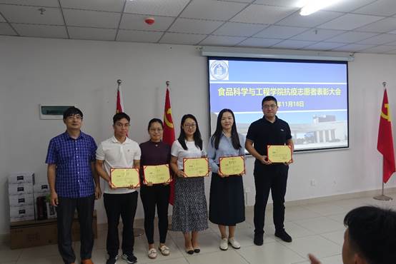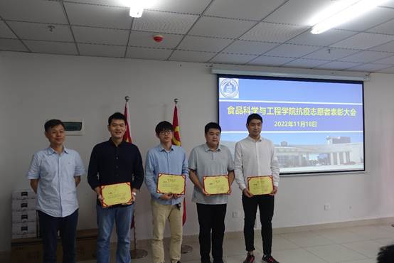2022年11月18日上午,在线买世界杯平台在研发楼610室举行教职工抗疫志愿者表彰大会,对该院积极参与2022年8月-10月疫情防控和学生返校工作的志愿者进行表彰。该院党委邓秀成书记主持表彰会,李从发院长、申铉日副院长、陈文学副院长、张伟敏副院长等学院领导为志愿者颁发荣誉证书和纪念品,全体教职工参加会议并向挺身而出、无私奉献、积极参与相关工作的志愿者们致以崇高的敬意。