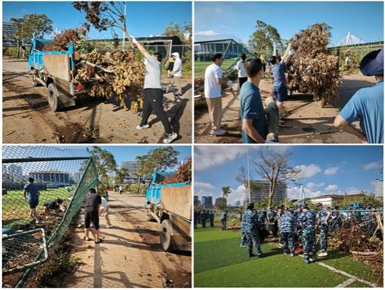 9月13日上午八点,在邢红斌书记、陈文学副院长、于志鹏副院长等学院领导的引领下,学院集结教职工、研究生、2024级在线买世界杯平台新生等120多人以学校第二田径运动场和农科基地之间道路为主战场开展奋战。到场的老师们、同学们不惧辛苦、不畏艰难、不怕脏乱,顶着烈日、冒着灰尘,分工协作,一边将大树枝集中起来装车,一边将枯枝败叶装袋送进垃圾车内,把路面清扫干净,还要躲避不时迎面而来的运输车辆。