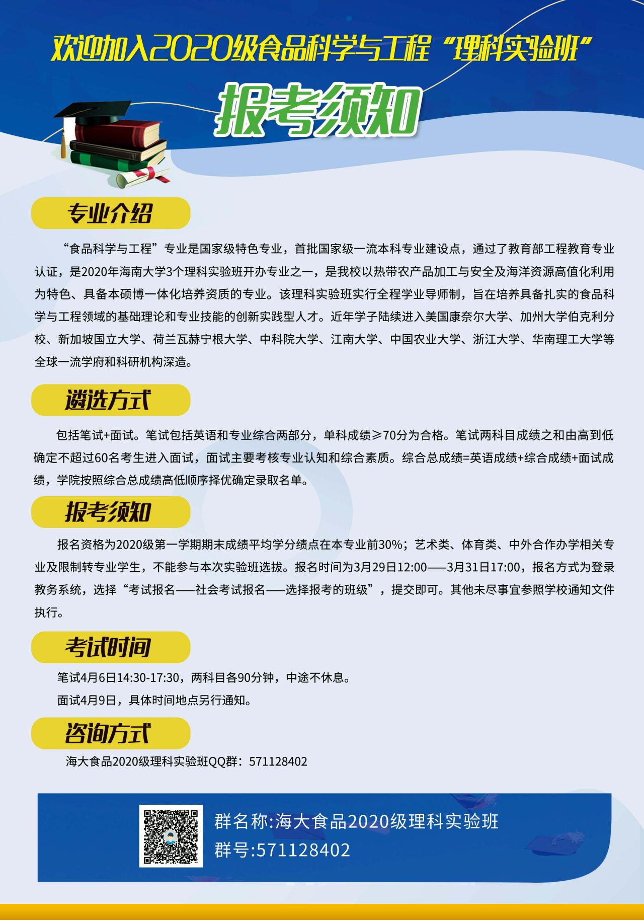 欢迎报考食品科学与工程理科实验班