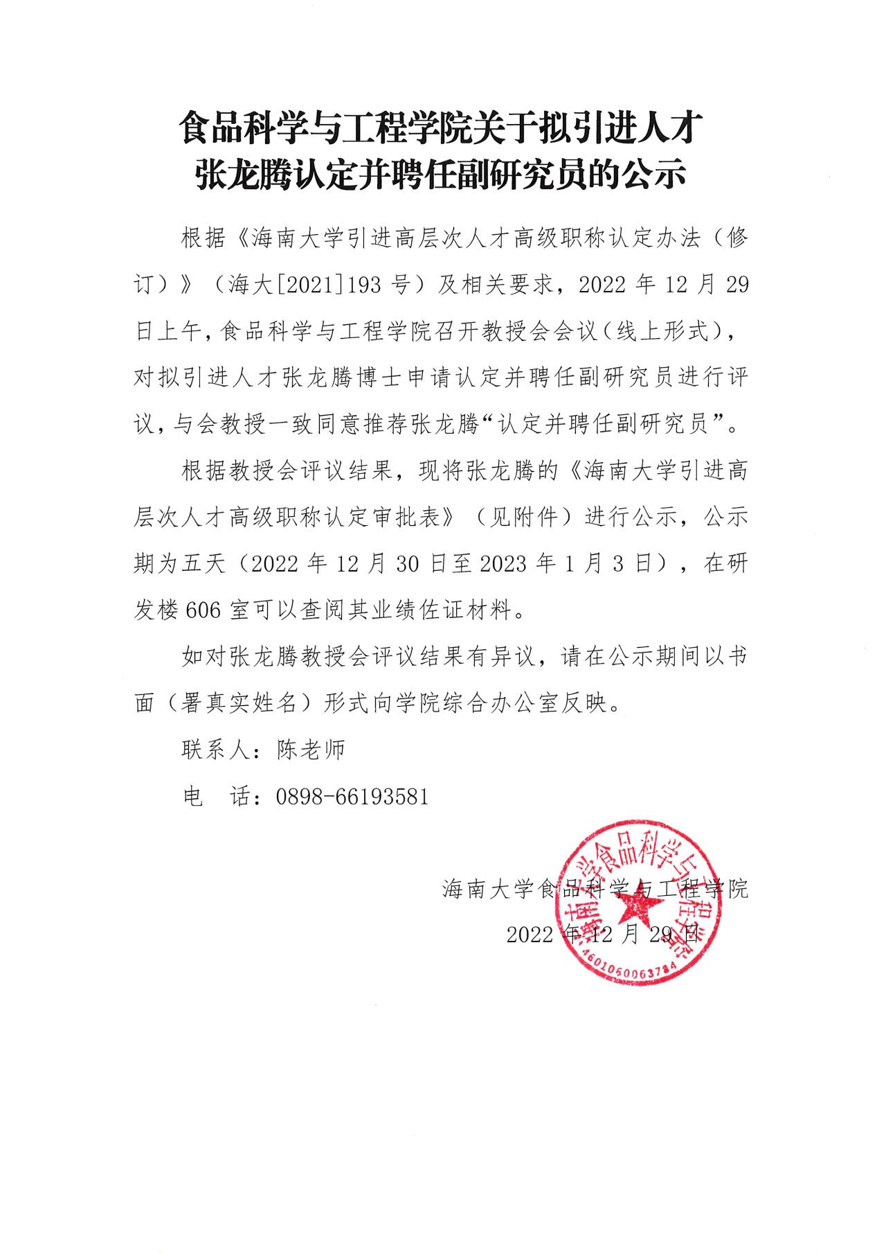 在线买世界杯平台关于拟引进人才张龙腾认定并聘副研究员公示